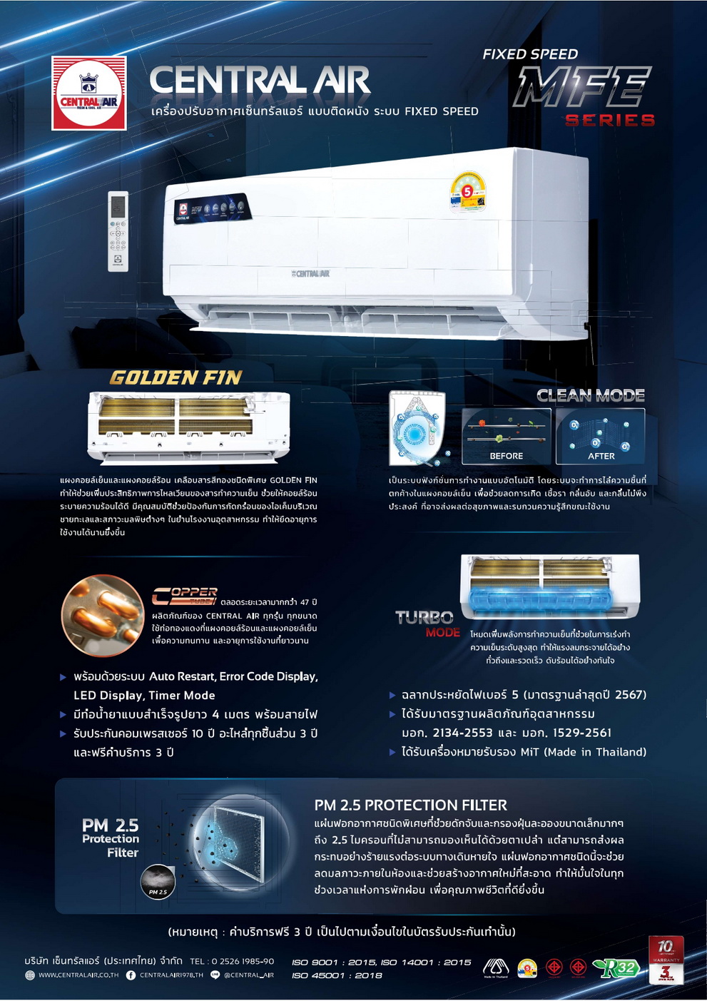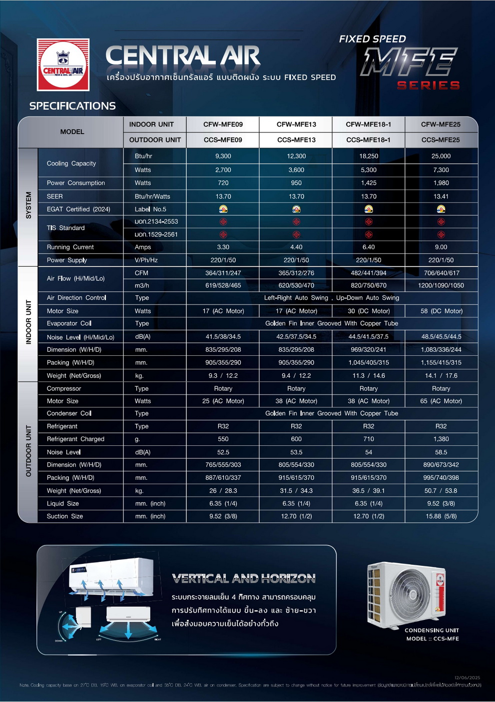 CFW-MFE18 / CCS-MFE18 เซ็นทรัลแอร์ (CENTRAL AIR) Fixed Speed R32 18,250 BTU. พร้อมบริการติดตั้ง